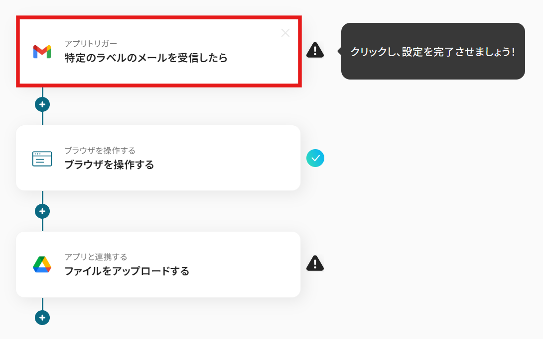 まず、一番上の「特定のラベルのメールを受信したら」のアイコンをクリックします。