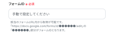 フォームIDは、今回使用するGoogleフォームから取得し入力しましょう。