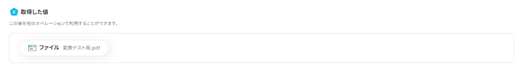 ③一度指定したフォルダに取得したい形式と同様のPDFをテストで格納し、Yoomに戻ってトリガーテストを行い取得を確認したら保存します。