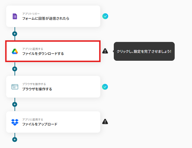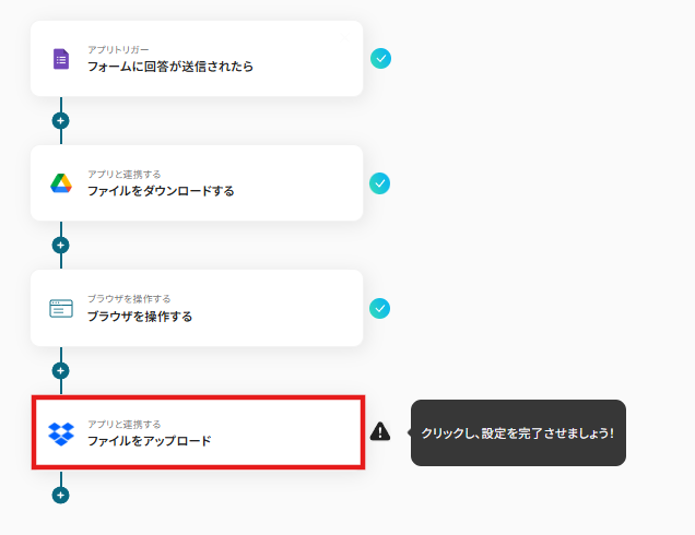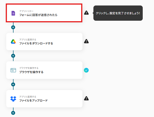それではここから代表的な例として、GoogleフォームでJFIFファイルが送信された際に、RPA機能でPDFに変換してDropboxに自動で格納するフローを解説していきます!