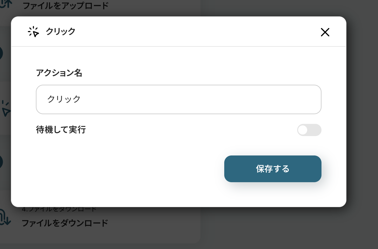 このオペレーションはブラウザ上でクリックが必要な場面で使用します。