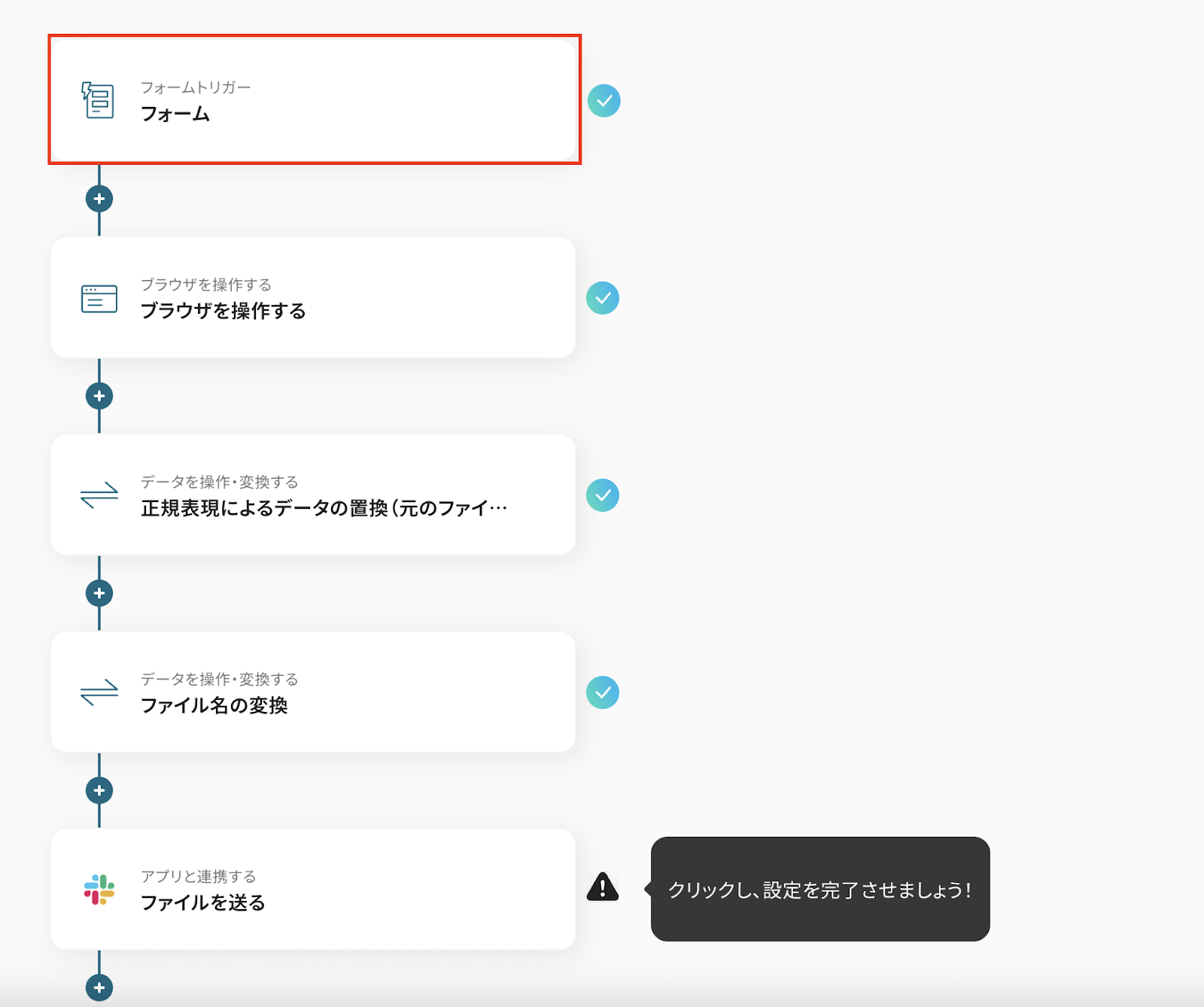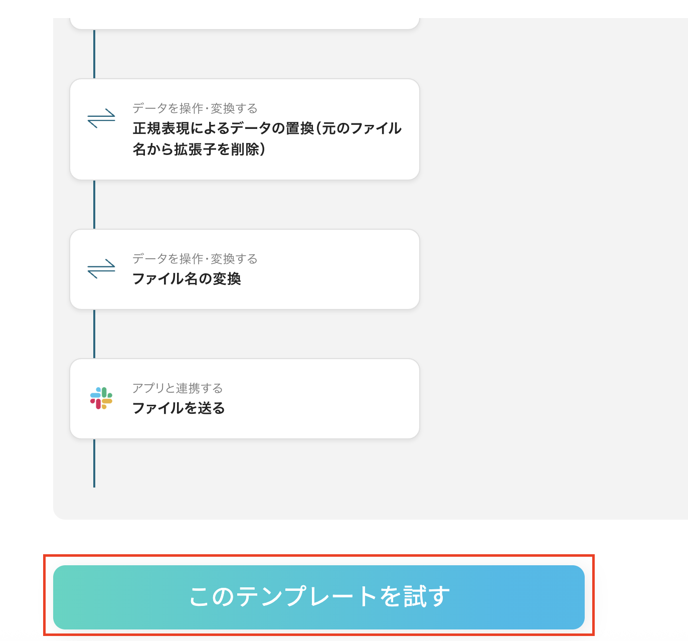 ※こちらのテンプレートで紹介しているSlackの「ファイルを送る」アクションは現在利用できません。
