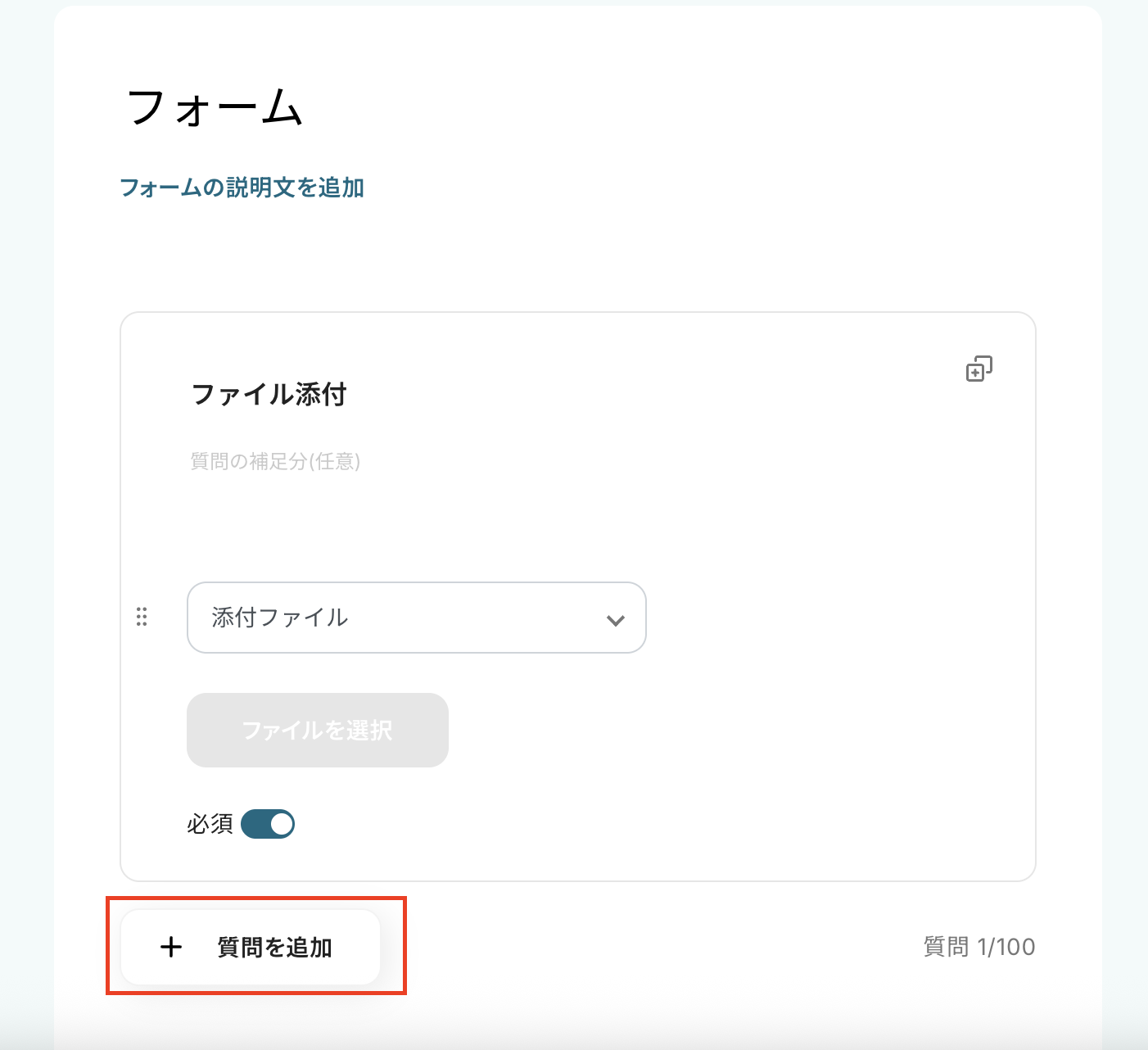 もし項目を増やしたい場合は、「質問を追加」から設定できます。