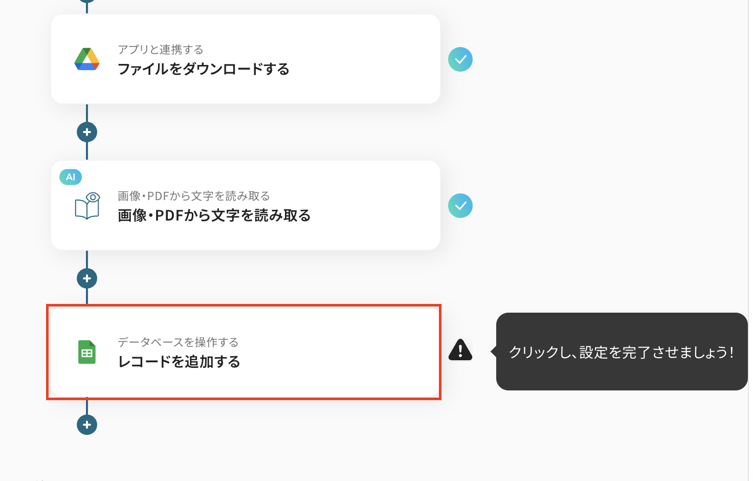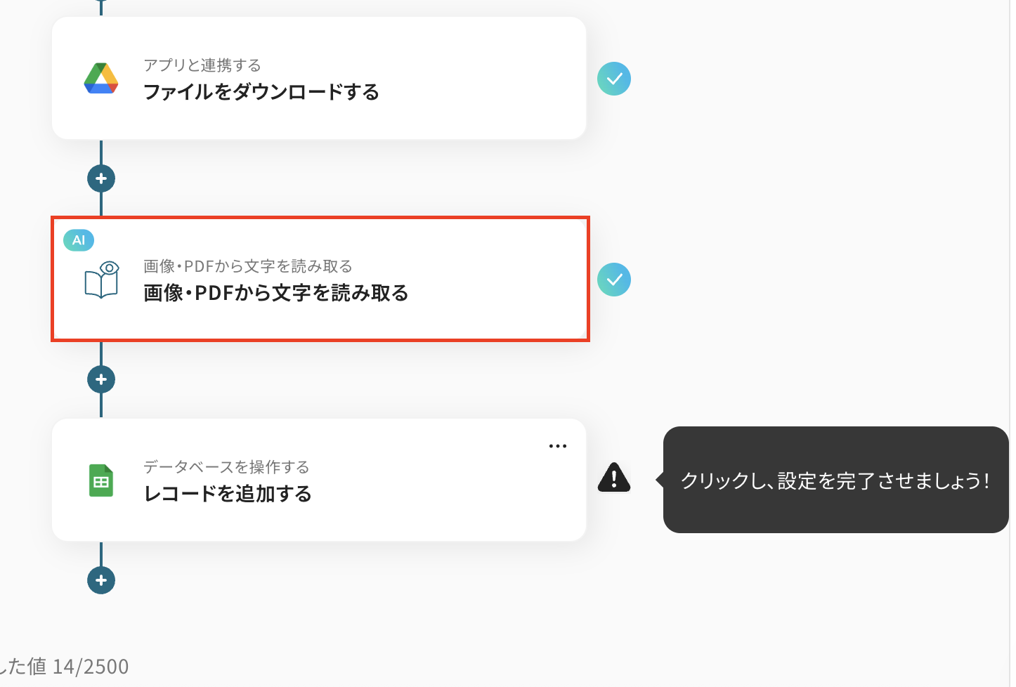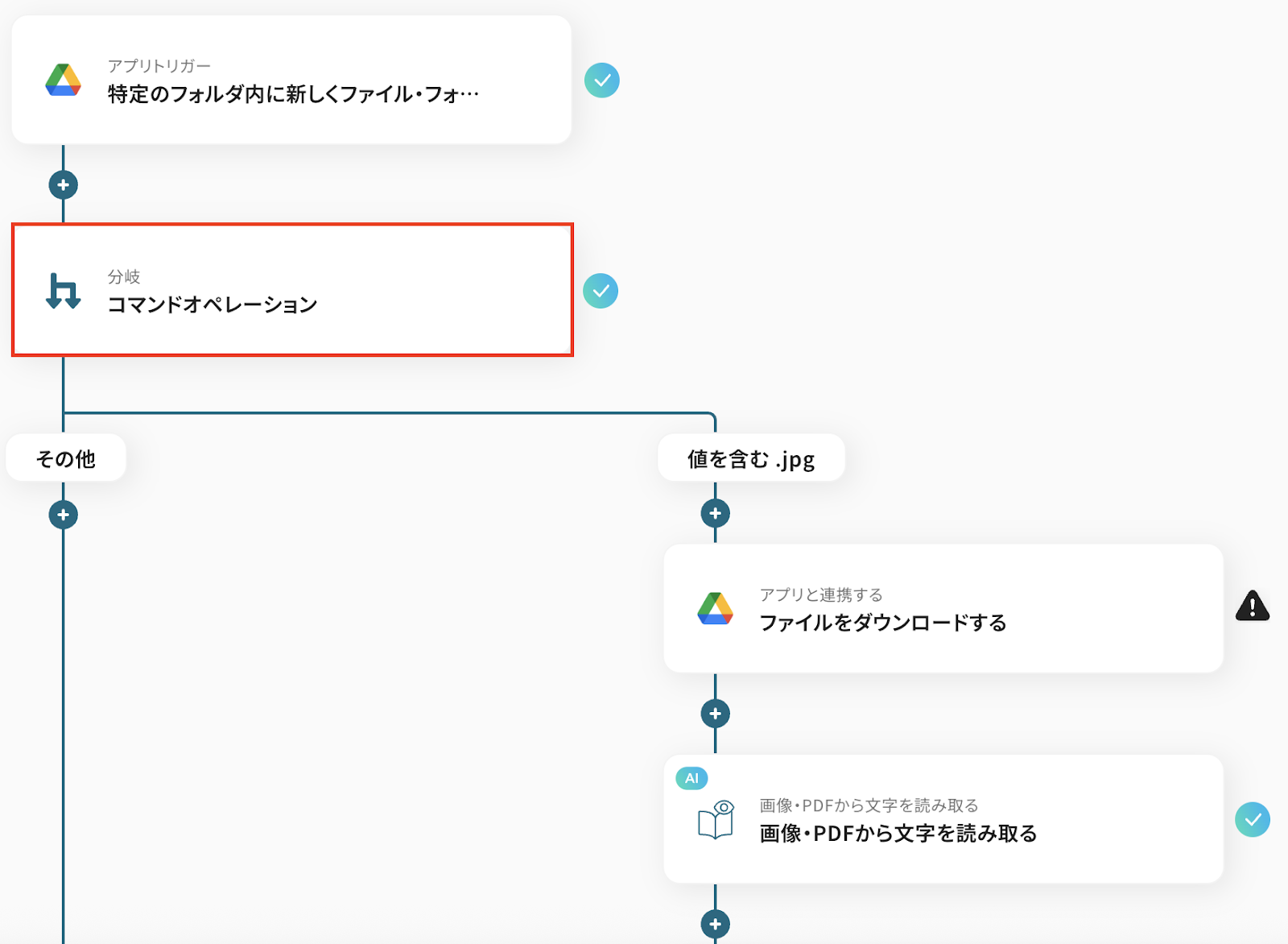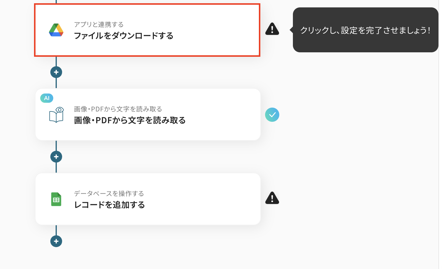 それではここから代表的な例として、Google Driveに保存されたJPGファイルから自動でテキスト情報を読み取り、Google スプレッドシートに記録するフローの作り方を解説します。