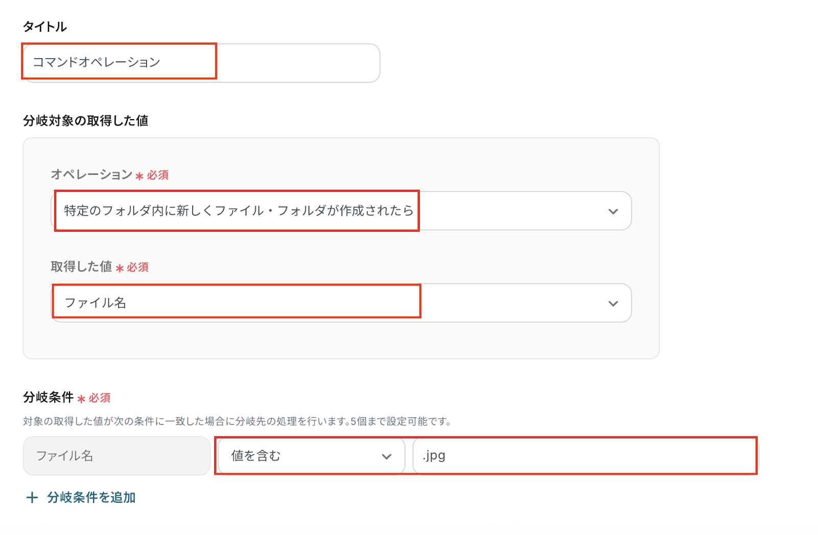 ・分岐はミニプラン以上のプランでご利用いただける機能(オペレーション)となっております。フリープランの場合は設定しているフローボットのオペレーションはエラーとなりますので、ご注意ください。