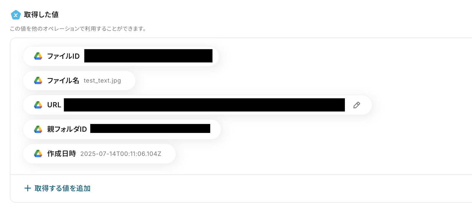 取得した値を活用せず、手入力した場合、同じファイルIDの情報を繰り返し取得してくることになるので注意しましょう。