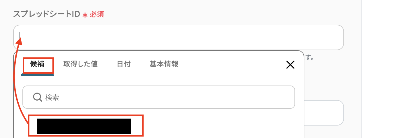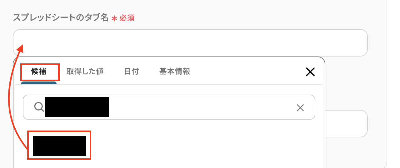 スプレッドシートID・タブ名は候補から選択してください。