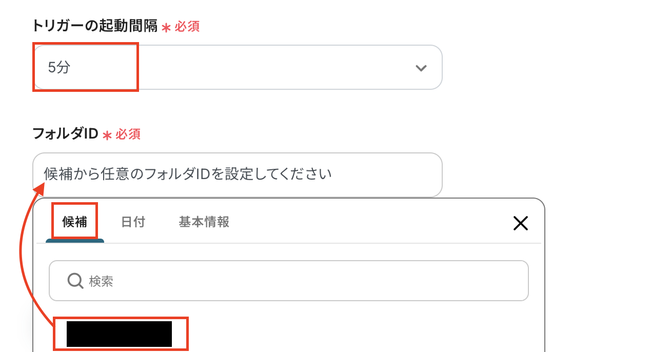 ・トリガーは5分、10分、15分、30分、60分の間隔で起動間隔を選択できます。