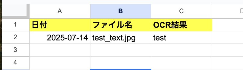 Google DriveにJPGファイルが格納されたら、OCRでテキストを抽出しGoogle スプレッドシートに追加する