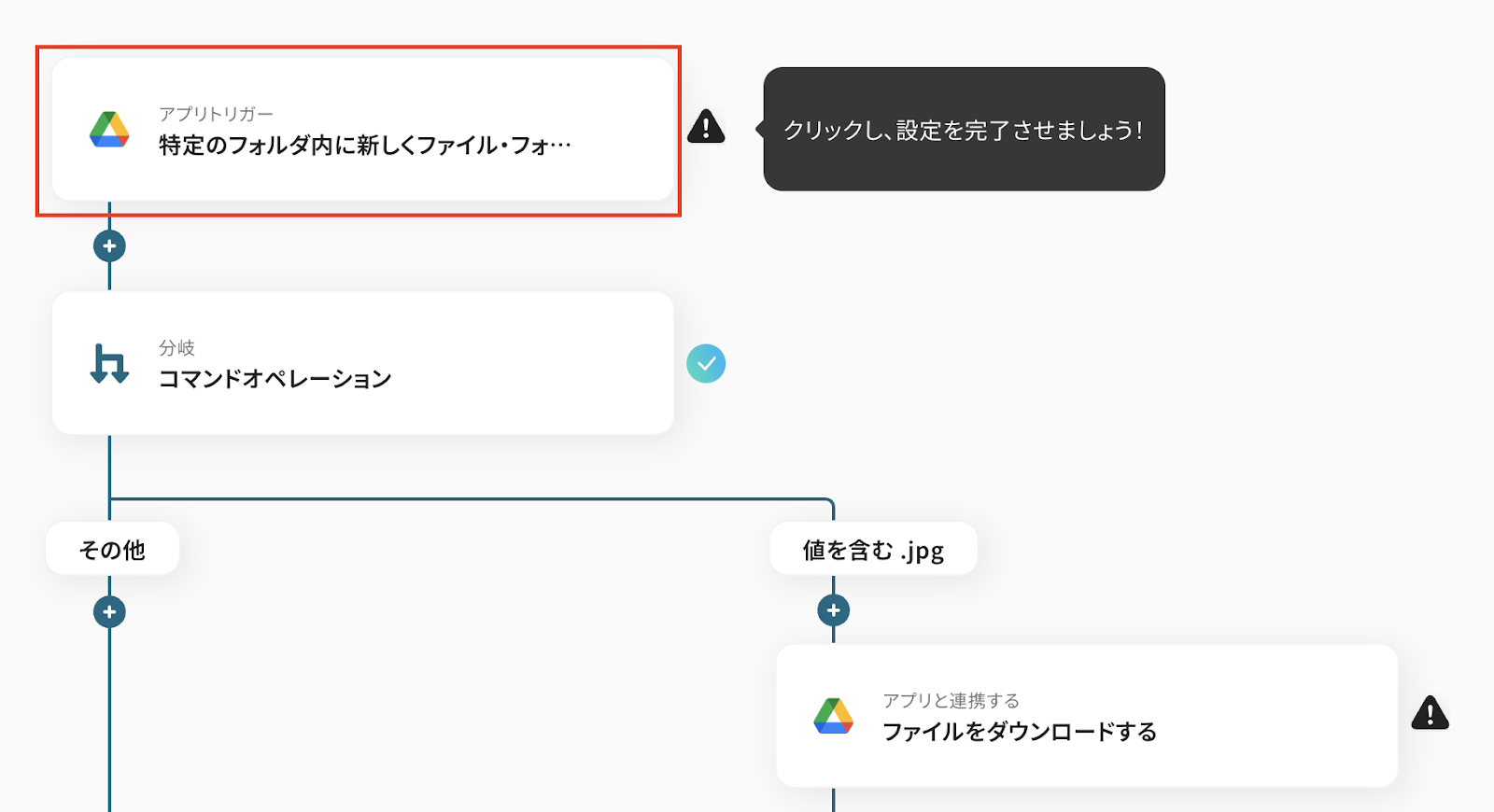 先ほどコピーしたテンプレートの「特定のフォルダ内に新しくファイル・フォルダが作成されたら」をクリックしてください。