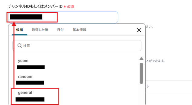 チャンネルIDもしくはメンバーIDを候補から選択してください。指定したSlackのチャンネルに通知をします。