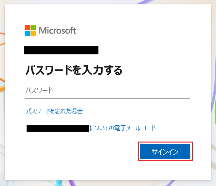 続けて、パスワードを入力してサインインして下さい。