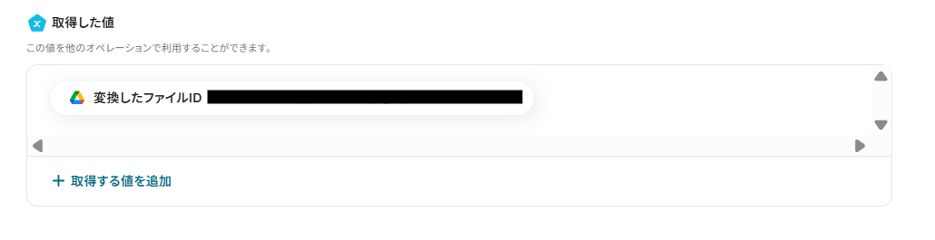取得した値 を確認してください。この後に取得した値を使用して、フローボットを完成させていくので情報の抜け漏れがない確認しておきましょう!