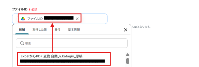 API接続設定を行います。ファイルIDを候補から選択してください。