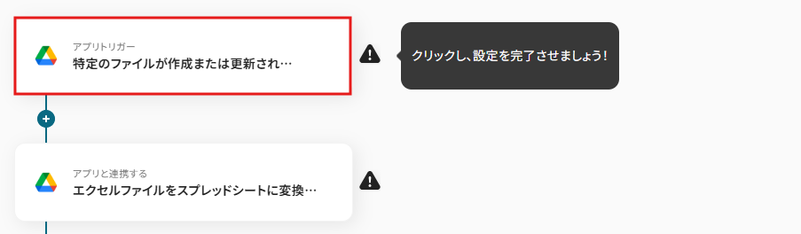 ここでは例として「Google DriveにMicrosoft Excelのファイルがアップロードされたら、PDFに自動変換しSlackに通知する」 というフローを作成してみましょう。