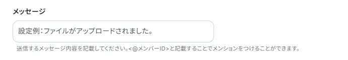 メッセージは設定例を参考に入力してください。Slackに通知する際のメッセージ内容です。