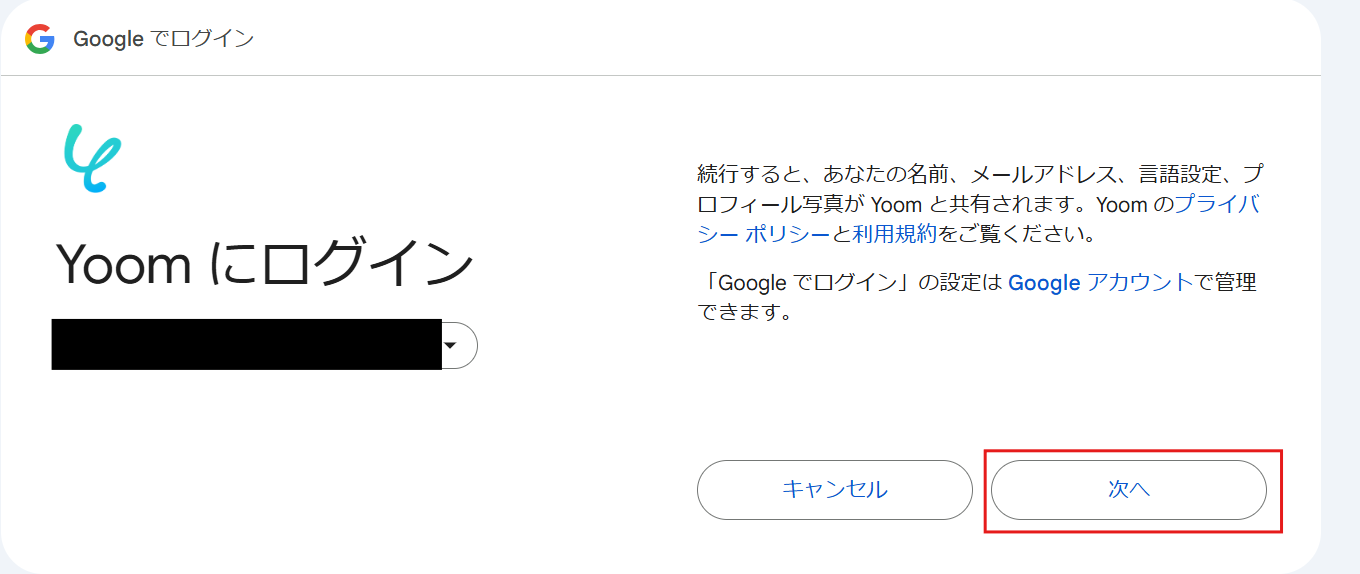 以下の画面が出てきたら、連携するアカウント情報を確認して、次に進みましょう。