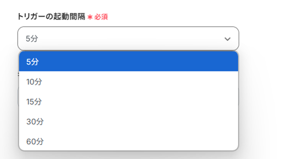 トリガーの起動タイミングは、5分、10分、15分、30分、60分から設定可能です。 基本的にはそのプランの最短の起動間隔にしてお使いいただくことをおすすめします。