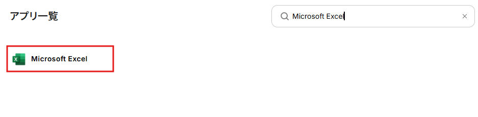 「新規接続」をクリックしたら、アプリ一覧から「Microsoft Excel」を検索してください。