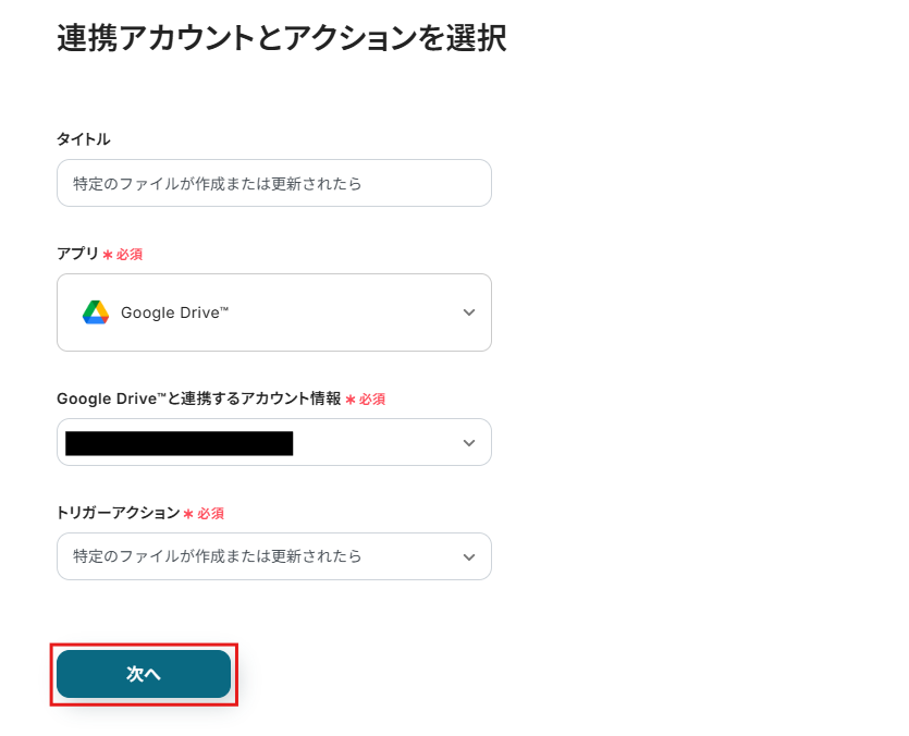 Google Driveのトリガー設定では、ワークフローを起動する対象のフォルダを任意で指定することが可能です。 分岐機能では、特定のファイル名が含まれる場合にのみ処理を実行するなど、ワークフローを起動する条件をより詳細に設定できます。 Gmailでメールを送信するアクションでは、通知先のメールアドレス、件名、本文の内容などを自由にカスタマイズしてください。 ■注意事項
