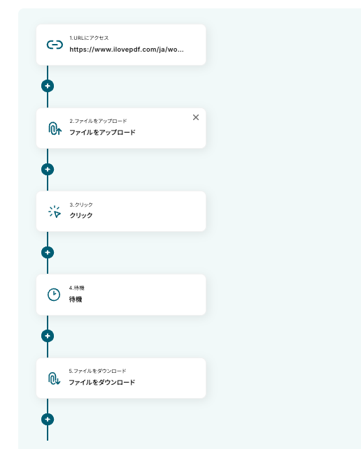 フォームで受け取ったDOCファイルを、都度手作業でPDFに変換している方 ファイル変換の効率的な方法を探し、ファイル管理を自動化したい方 RPAを活用して、ファイル形式の変換といった定型業務の自動化を検討している方 ■このテンプレートを使うメリット