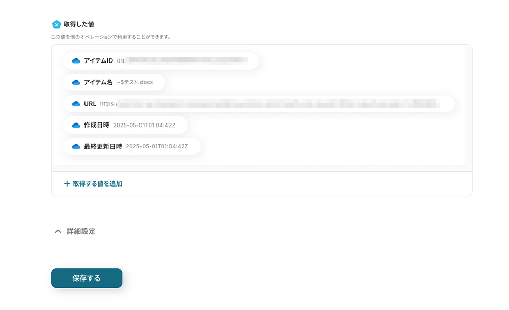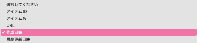 取得した値:こちらも追加操作は不要です。選択できる項目は以下です。