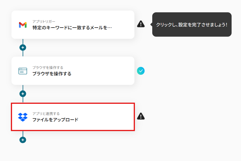 ■概要 Gmailで受信した画像をRPA経由で圧縮後、Dropboxに保存するフローです。 Yoomを利用すると、プログラミング不要で簡単にアプリ同士を連携することができます。 ■このテンプレートをおすすめする方 1.Gmailを日常的に利用している方 ・日常的にGmailを使って重要なメールを受信しているが、画像ファイルの管理に手間を感じている方 ・Gmailで受信した画像を効率的に保存したいと考えている方 2.Dropboxを活用してデータの共有や保存を行っている方 ・Dropboxを使ってファイルを共有しているが、画像のサイズが大きく、ストレージ容量の無駄遣いを避けたい方 ・自動化を活用して作業の効率化を図りたいと考えている方 ■注意事項 ・GmailとDropboxのそれぞれとYoomを連携してください。 ・トリガーは5分、10分、15分、30分、60分の間隔で起動間隔を選択できます。 ・プランによって最短の起動間隔が異なりますので、ご注意ください。 ・ブラウザを操作するオペレーションはサクセスプランでのみご利用いただける機能となっております。フリープラン・ミニプラン・チームプランの場合は設定しているフローボットのオペレーションはエラーとなりますので、ご注意ください。 ・サクセスプランなどの有料プランは、2週間の無料トライアルを行うことが可能です。無料トライアル中には制限対象のアプリやブラウザを操作するオペレーションを使用することができます。 ・ブラウザを操作するオペレーションの設定方法は下記をご参照ください。 https://intercom.help/yoom/ja/articles/9099691