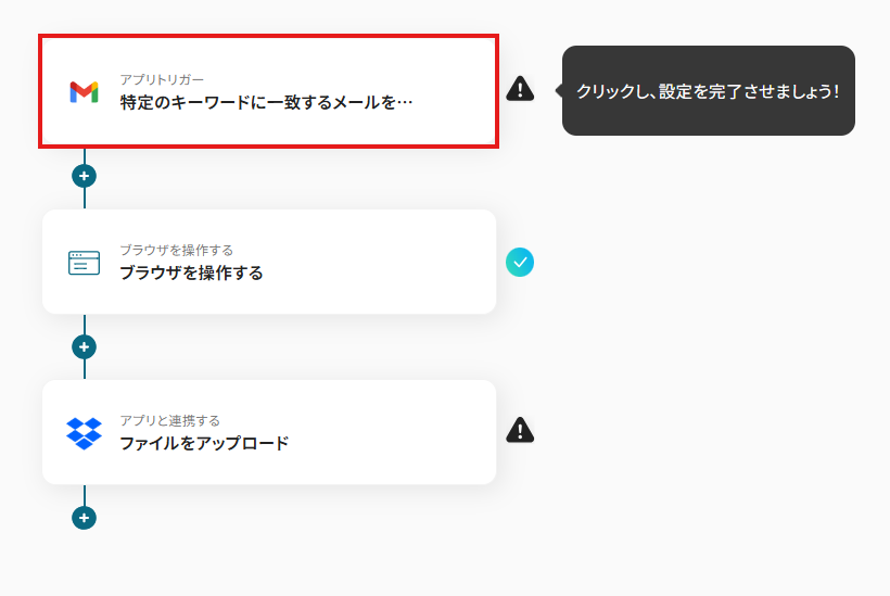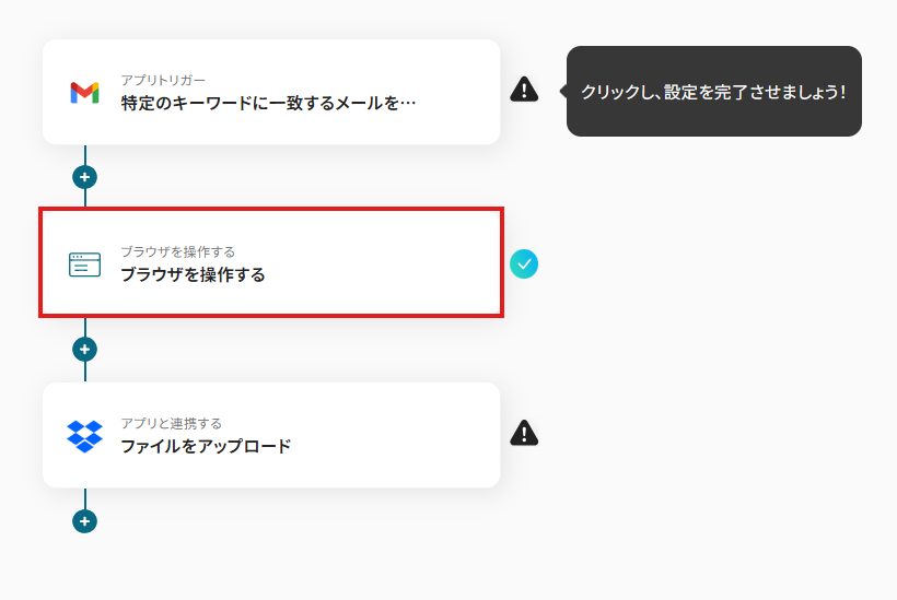 ※ブラウザを操作するオペレーションは、サクセスプランだけで使える機能です。フリープラン・ミニプラン・チームプランで設定しているフローボットでブラウザ操作を行おうとするとエラーになるのでご注意ください。 ※有料プランには、2週間の無料トライアルがあり、トライアル期間中は、有料プランで使えるアプリやブラウザ操作のオペレーションも試せます。 「ブラウザを操作する」の設定方法 | Yoomヘルプセンター