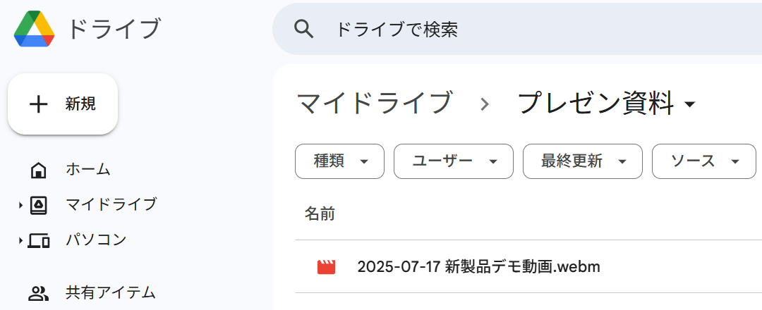 Google Driveに、WebM形式に変換されたファイルが格納されました!