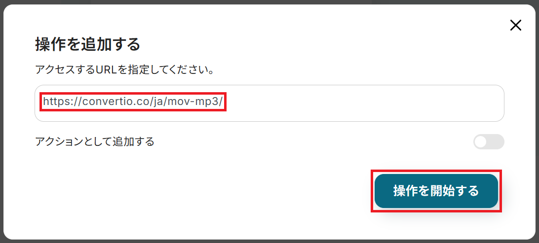 使用するサイトのURLを入力して「操作を開始する」をクリックしましょう。