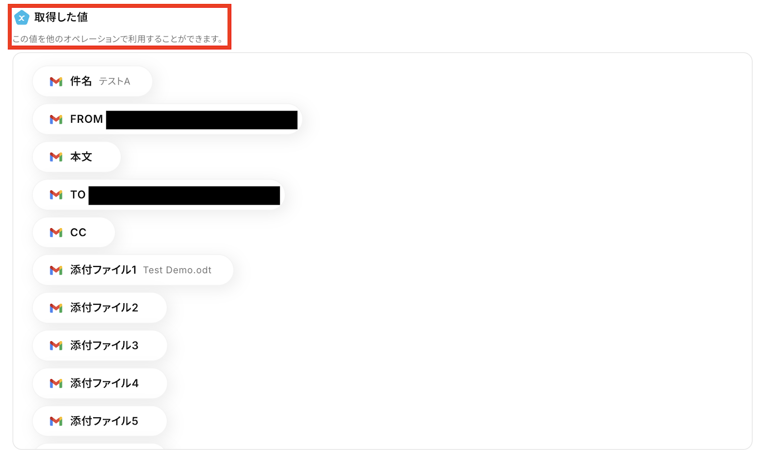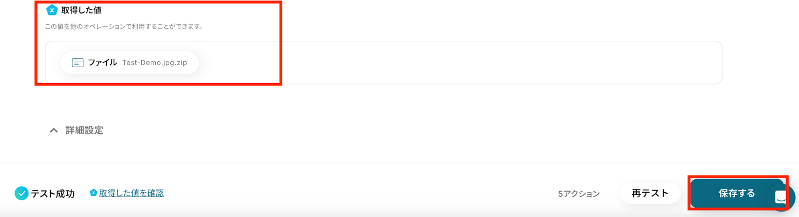 設定が終わったら、赤枠の「テスト」ボタンでテストを実行してみましょう!