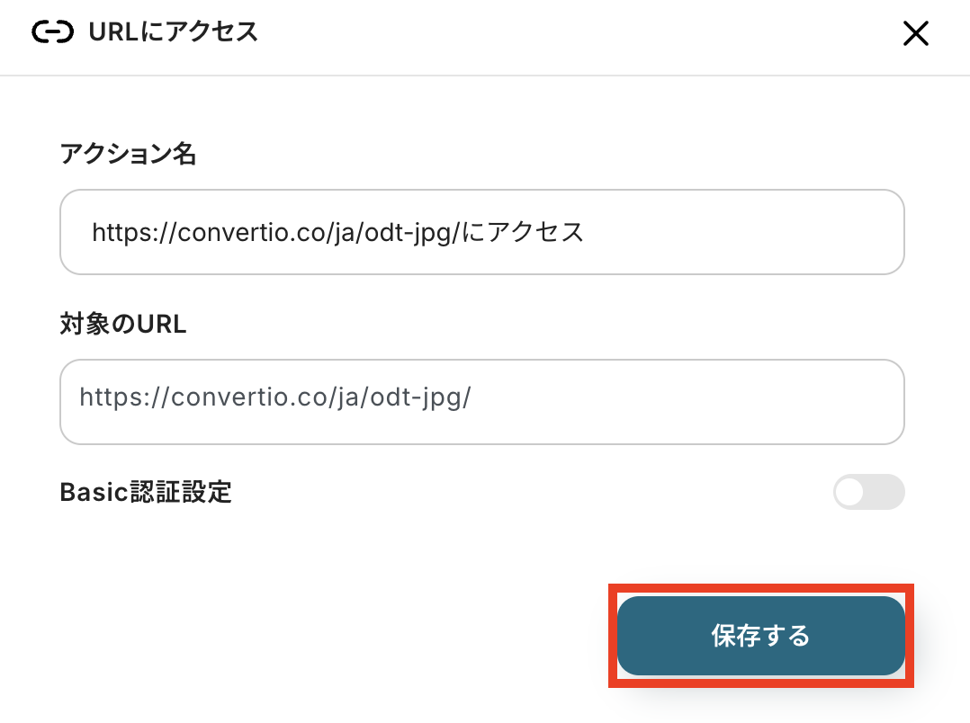 1つ目の設定では対象のURLを入力して「保存する」をクリックします。