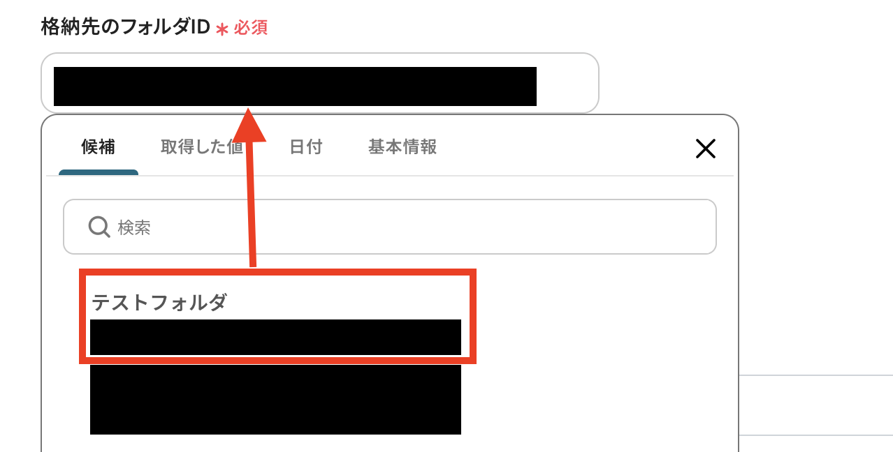 空欄をクリックすると格納先の候補が表示されますので、選択して設定してください。