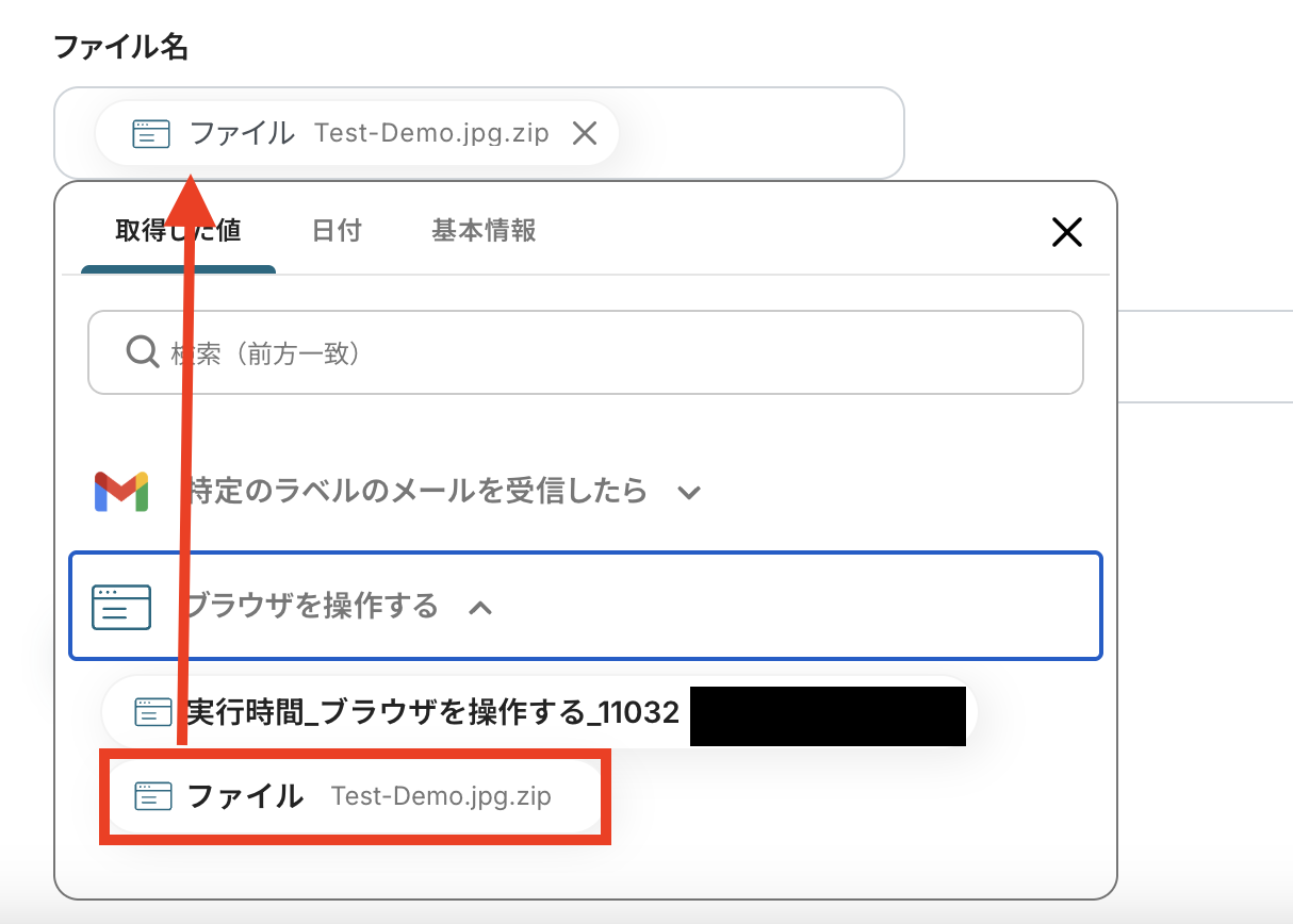 4.ステップ4で取得したJPGファイルがファイル名に設定されています。