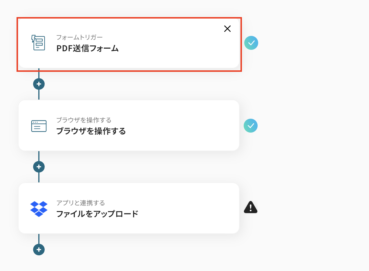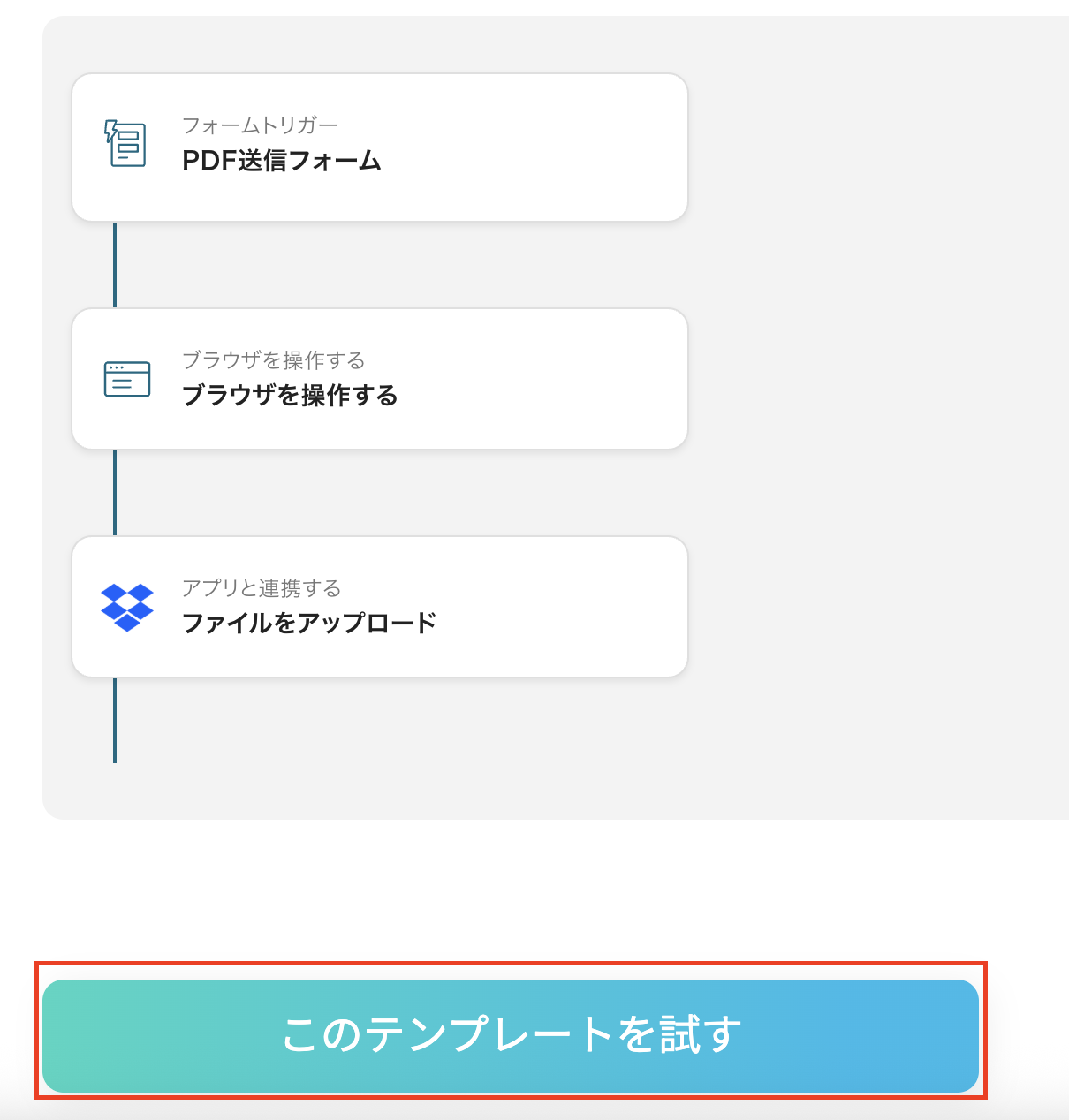 それではここから代表的な例として、フォームで送信されたPDFファイルを自動でPPTファイルに変換し、Dropboxに格納するフローを解説していきます!