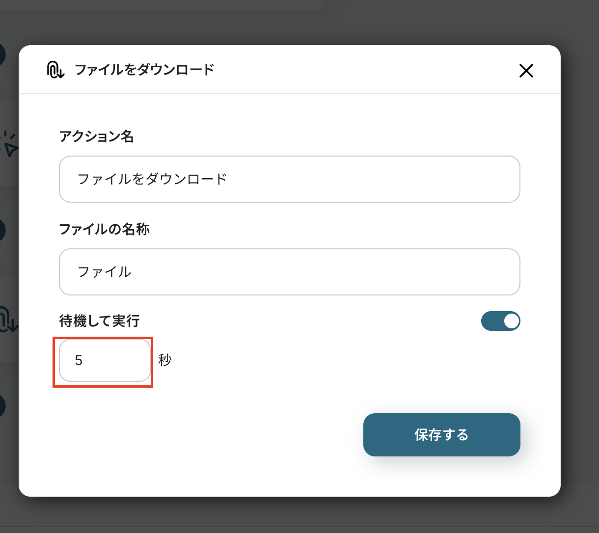待機時間はファイルをダウンロードする時にかかる時間、待機されてフローのエラーを防止するために設定しています。