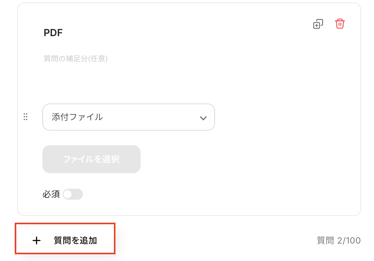 質問を追加したい時は「質問を追加」から項目を増やすことが可能です。