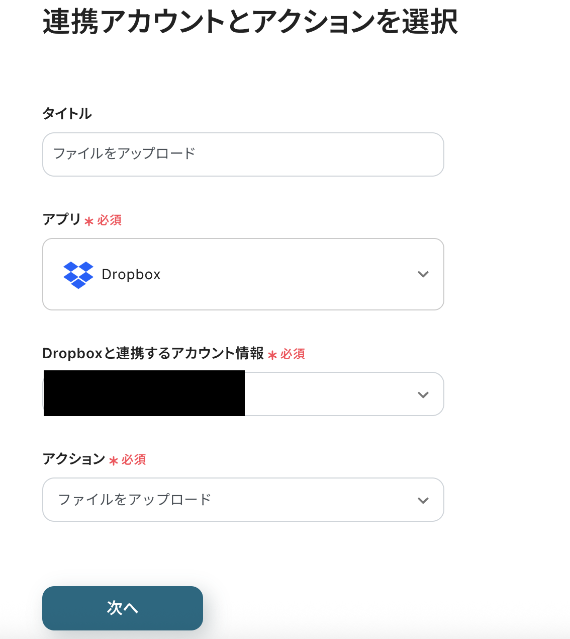 連携アカウントとアクションを選択は設定ができているので、以下の点を確認していください。