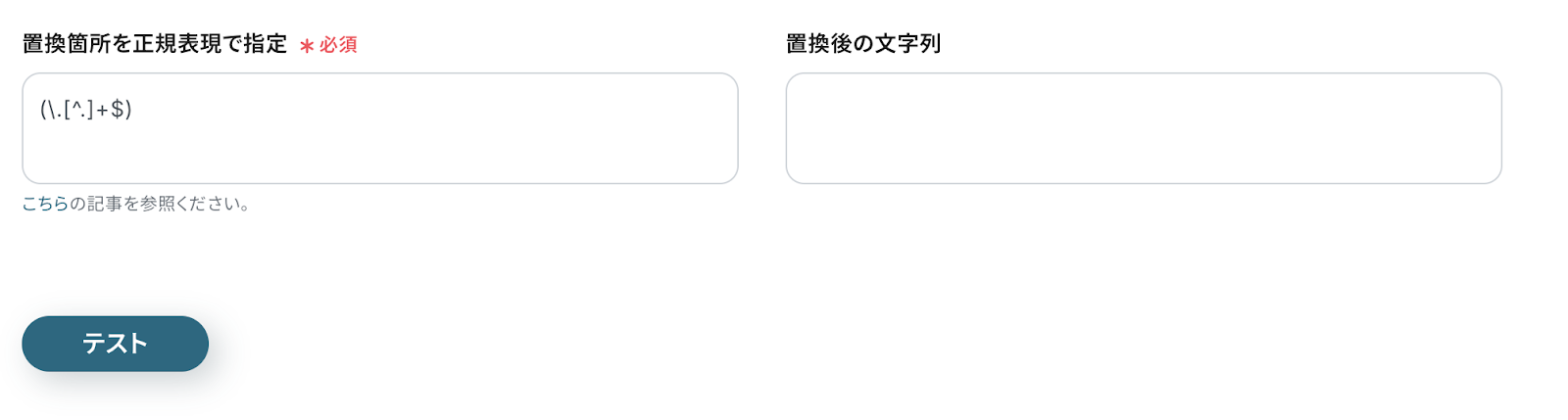 ここでの設定は、元のファイル名から拡張子を削除するために行います。