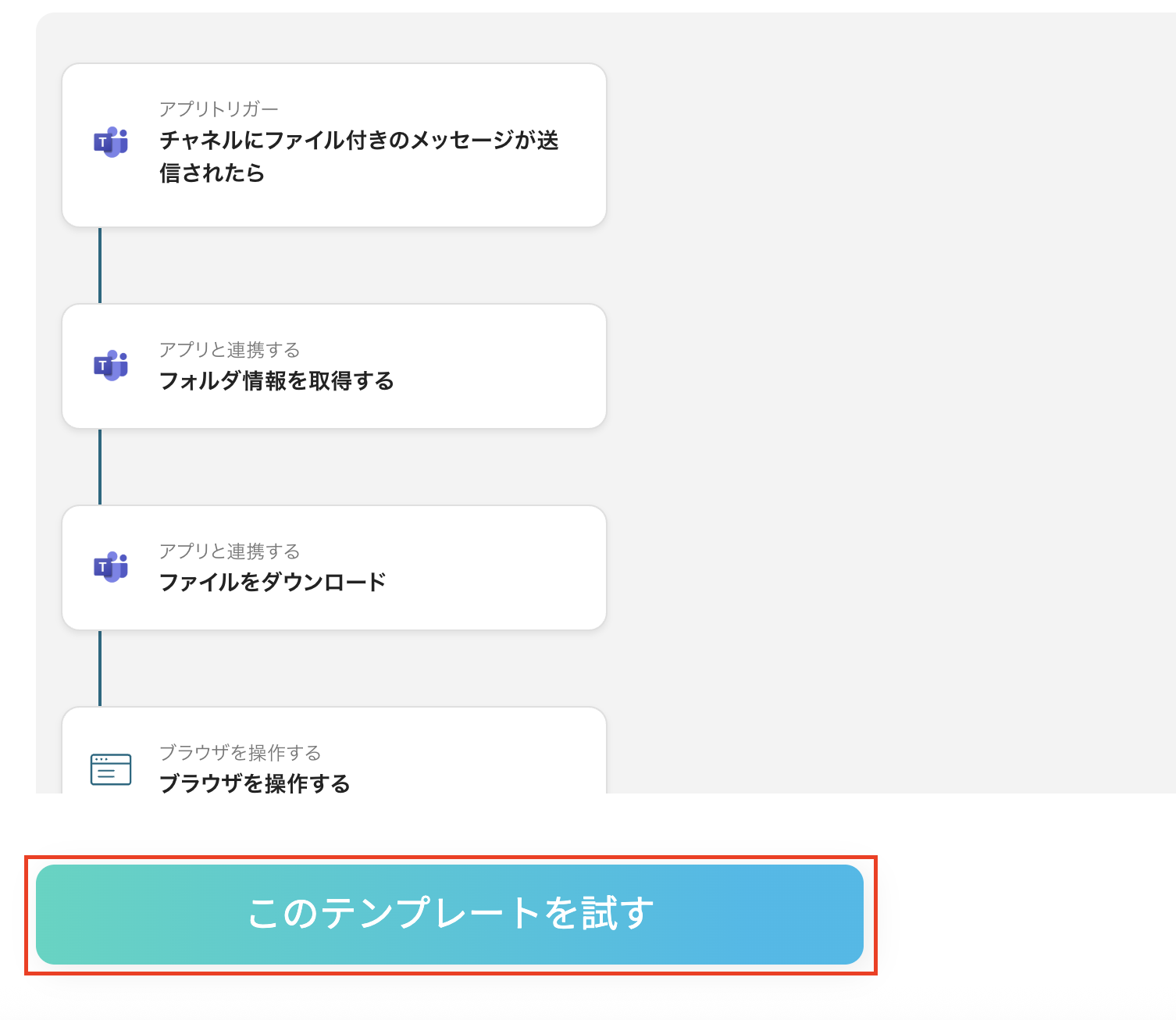 それではここから代表的な例として、Microsoft Teamsで受信したPDFファイルを検知し、オンラインツールでCADデータに自動で変換後、Boxの指定フォルダに保存するフローを解説していきます!