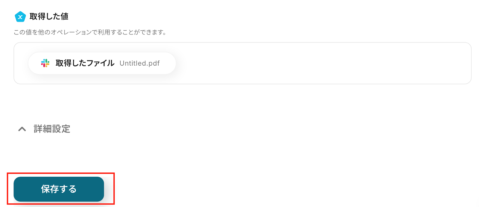 テストに成功したら、「取得した値」に表示されているか確認し、問題なければ、「保存する」をクリックして次に進みましょう!