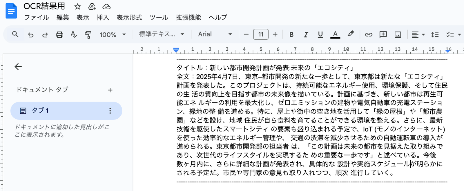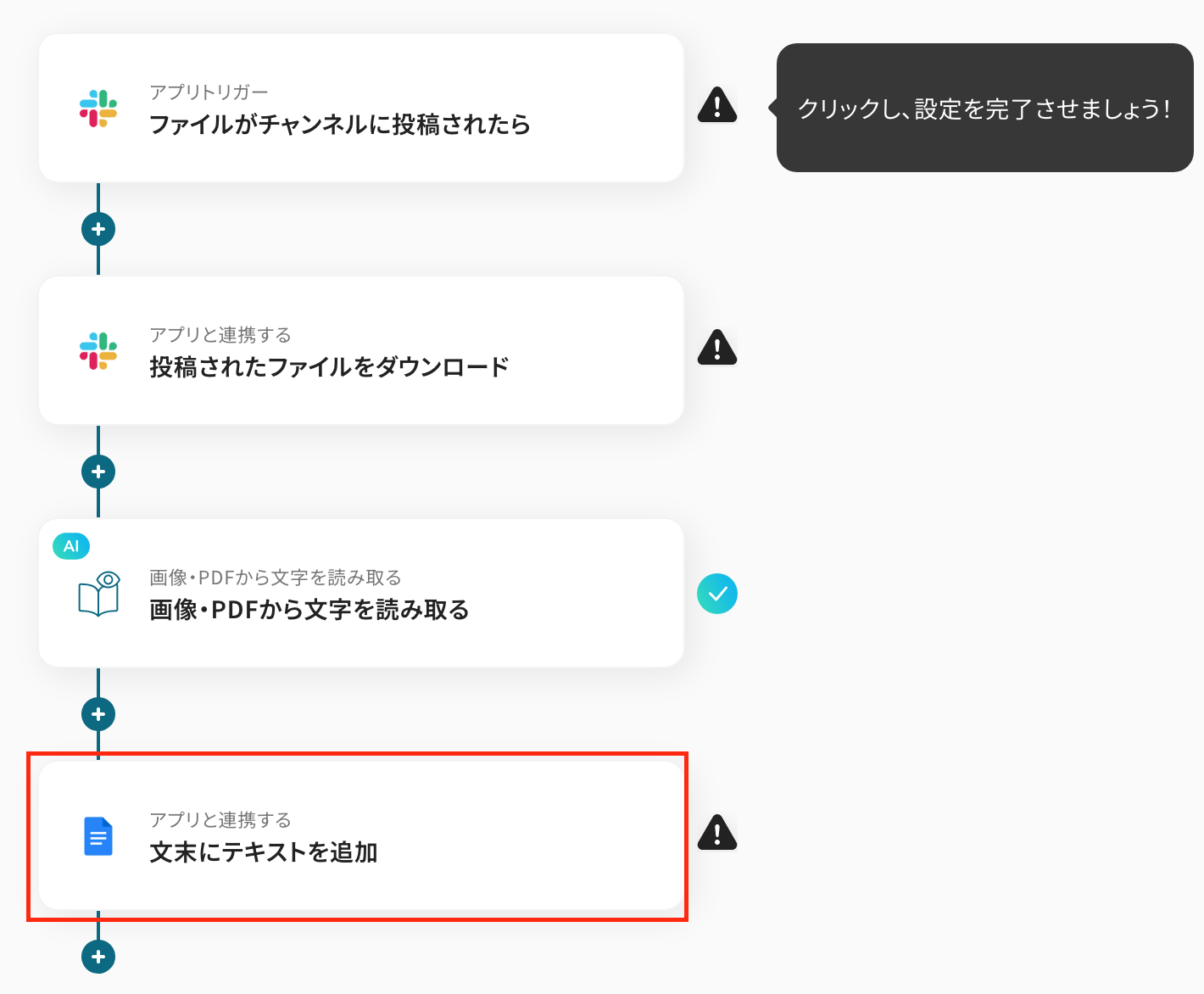 なお、今回はテキストデータの追加先に例としてGoogleドキュメントを使用していますが、もちろんその他のツールに格納、送信することも可能です!