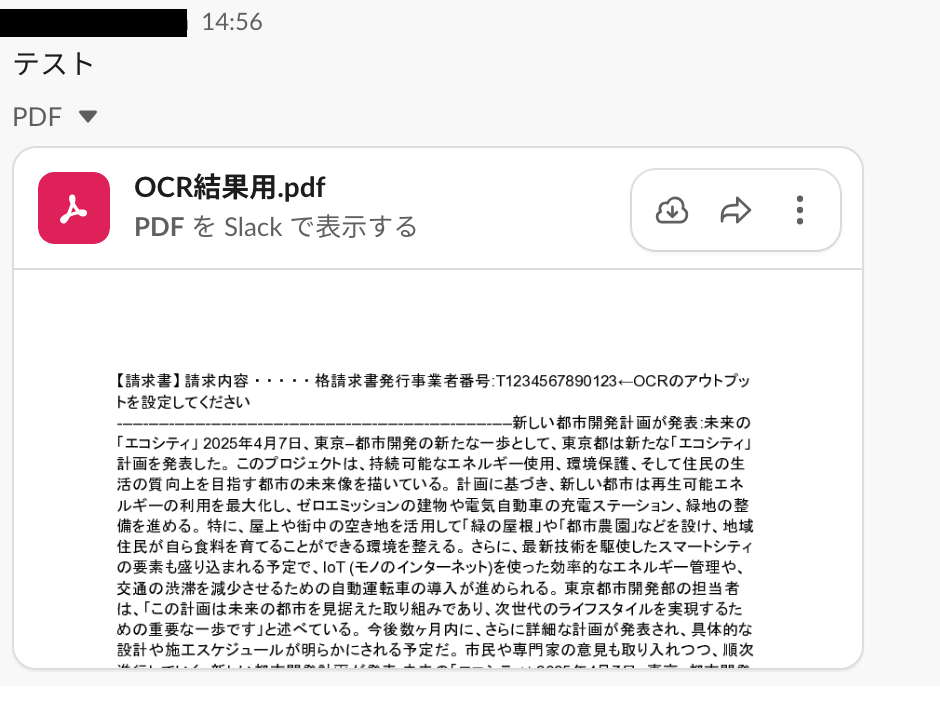 チャットツールで受け取ったPDFをOCR処理しテキストデータを追加する
