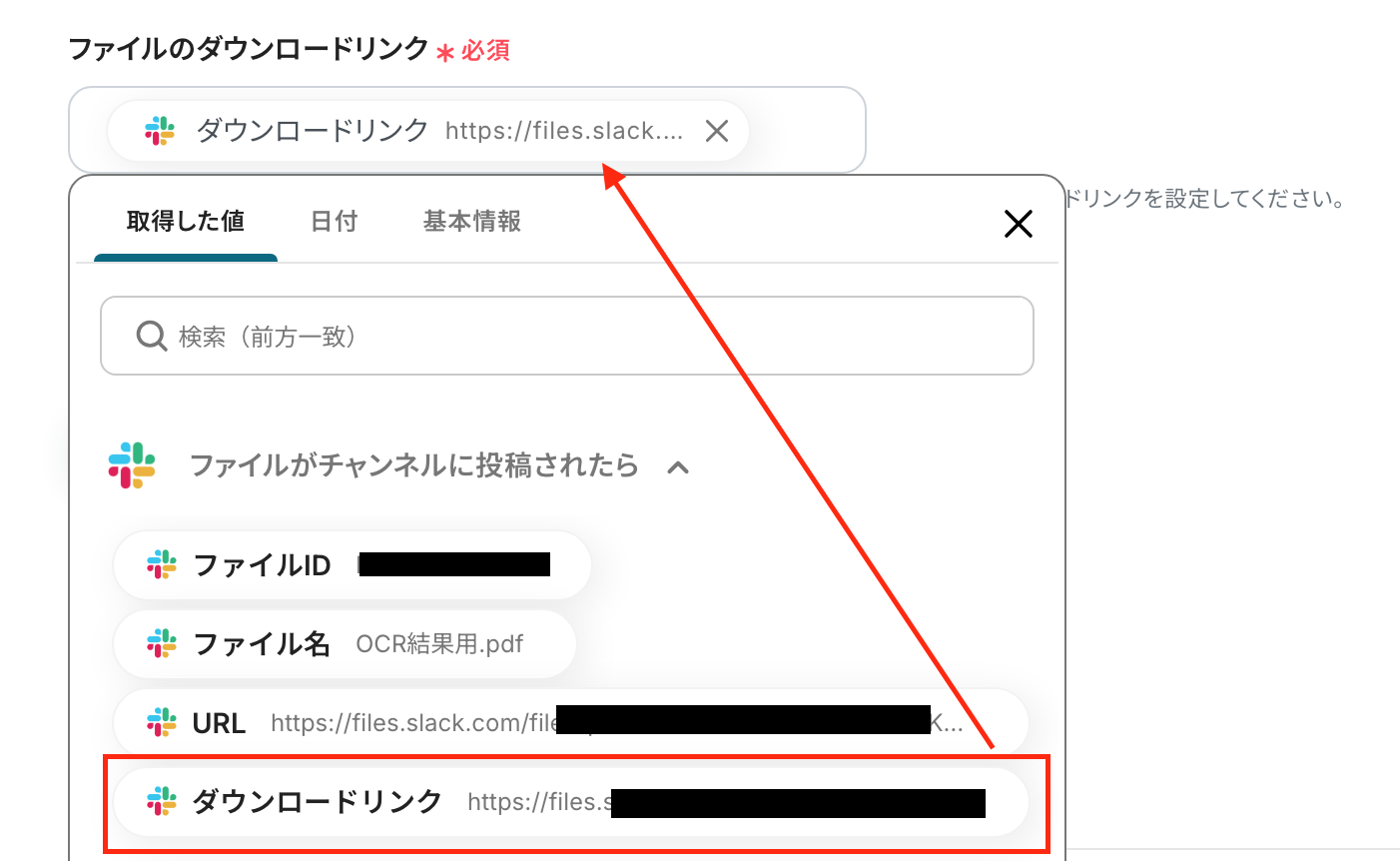 続いて、API接続設定の画面に遷移したら、「ファイルのダウンロードリンク」を入力しましょう。
