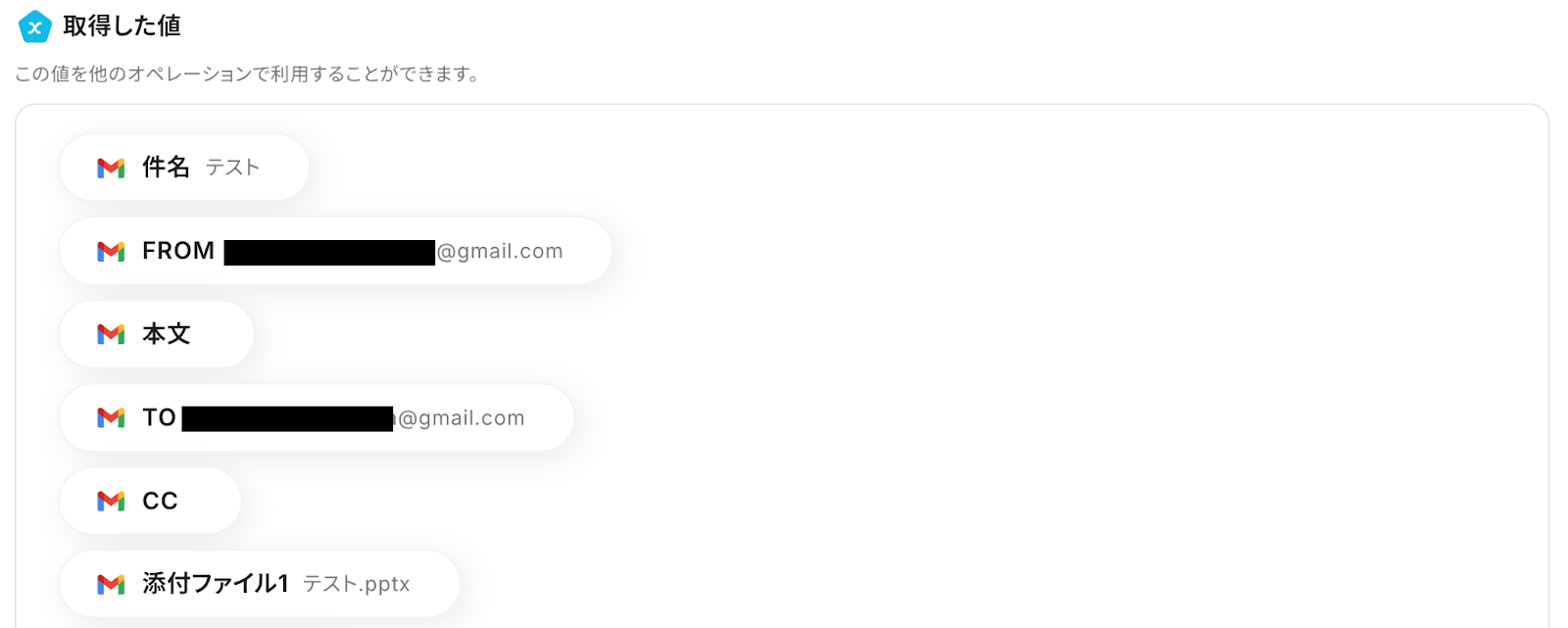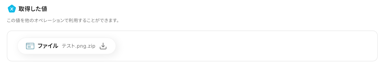 ここで取得したアウトプットを、後のアクションで利用します。