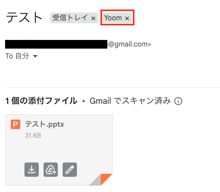 PPTXファイルを添付したメールを送信後、「テスト」をクリックしましょう!