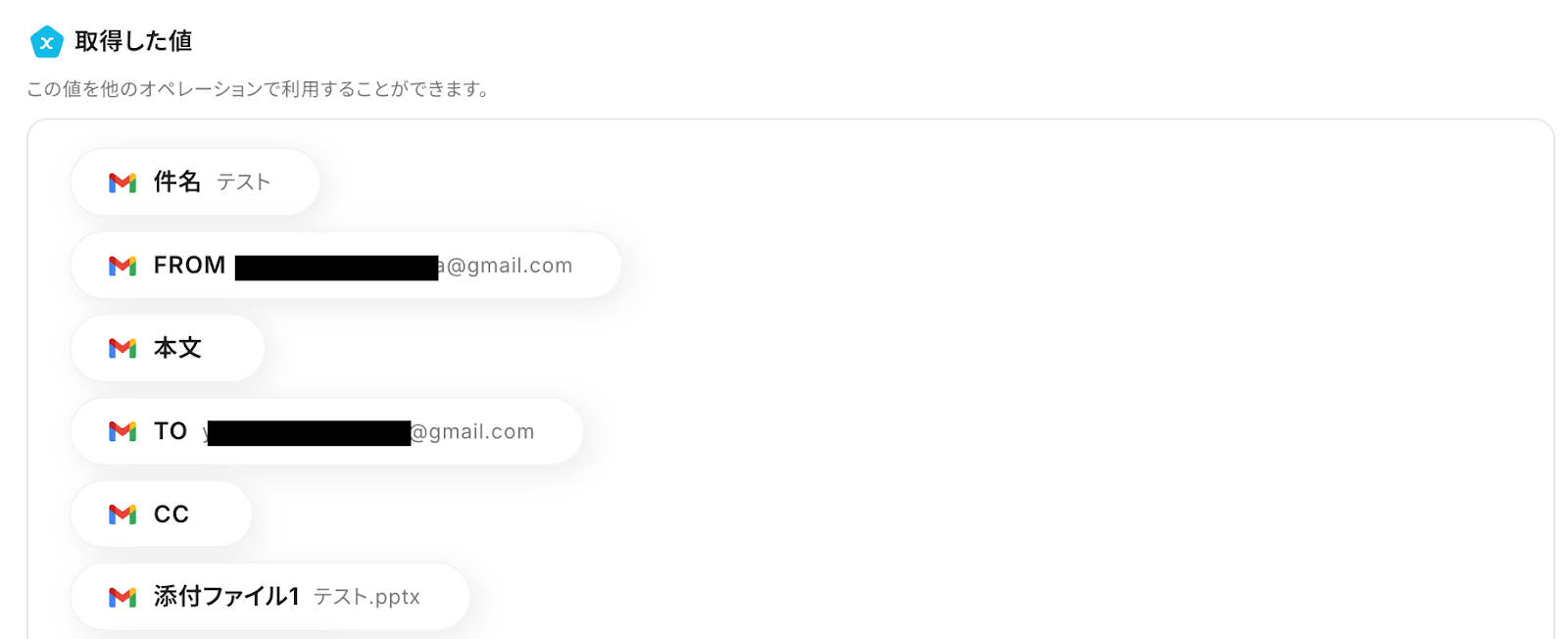 ここで取得したアウトプットを、後のアクションで利用します。