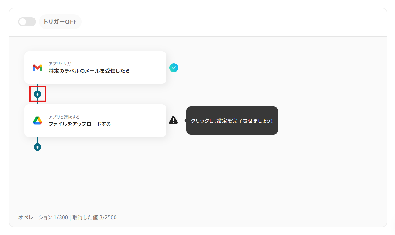 トリガーとなるメールの設定が完了し、フロー画面に戻ります。