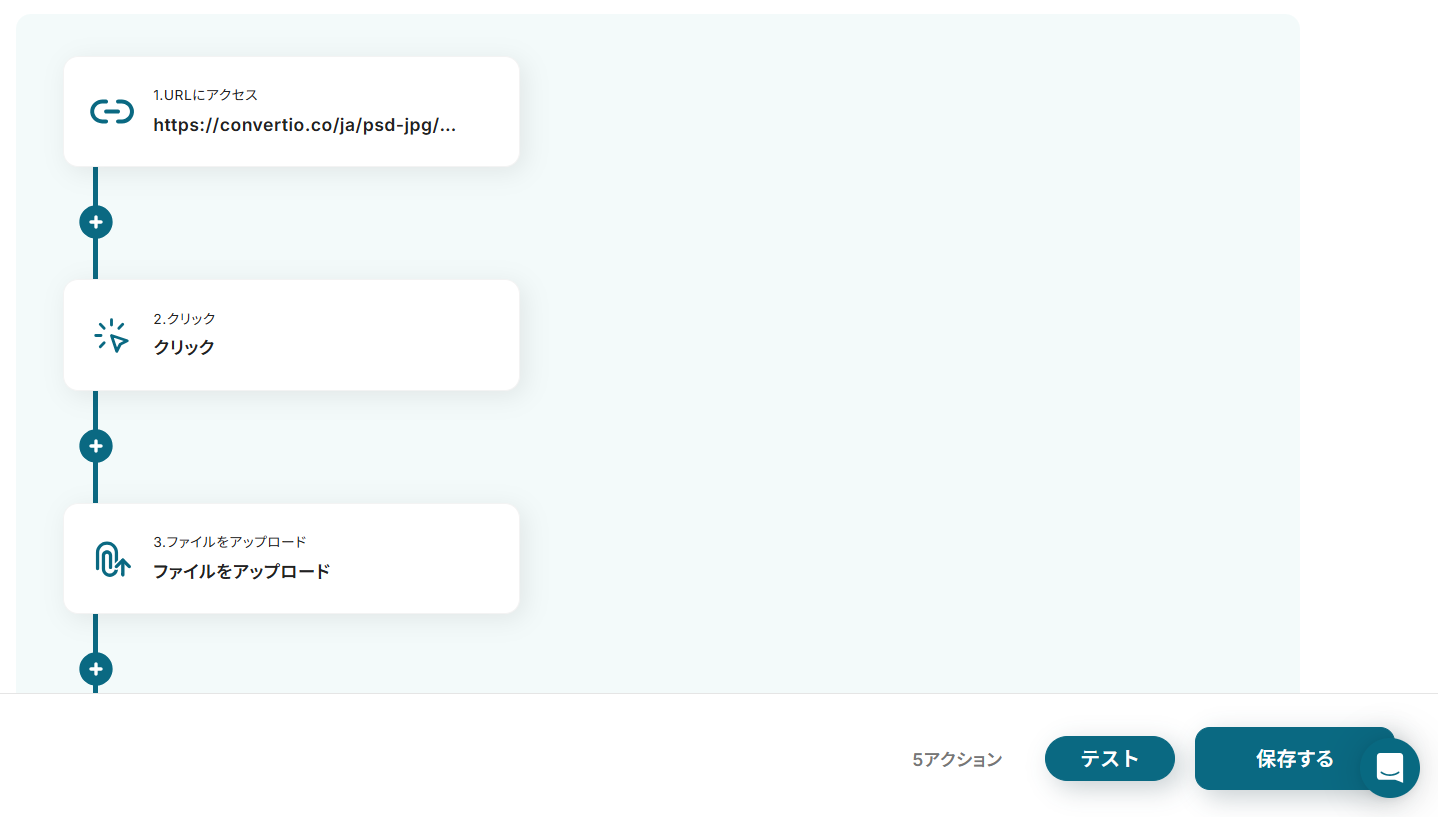 - Convertio以外のウェブサービスを用いる場合、全てのアクションを設定し直す必要があります。フロー画面でRPAアクションを削除するか、編集画面で不要なアクションを削除してから「+」で「ブラウザで操作を指定」を実行してください。