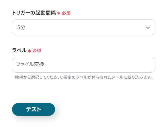 - 「ラベル」にトリガーとなるメールのラベルを設定。